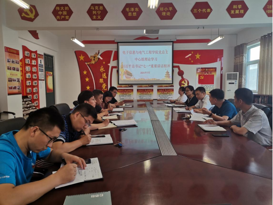 7月3日,电子信息与电气工程公司专题学习研讨习近平总书记“七一”重要讲话精神。公司党总支中心组成员及科级以上干部参加学习,会议由党总支书记李红安主持。