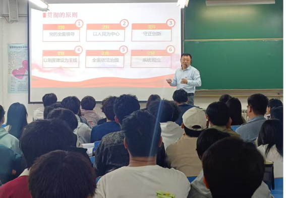 张涵以《深入学习贯彻习近平总书记关于全面深化改革的重要论述,凝聚中国式现代化强大力量》为题,结合党的二十届三中全会精神,为大家详细讲解了全会的重要意义,主要内容以及当代学子应当如何作为。