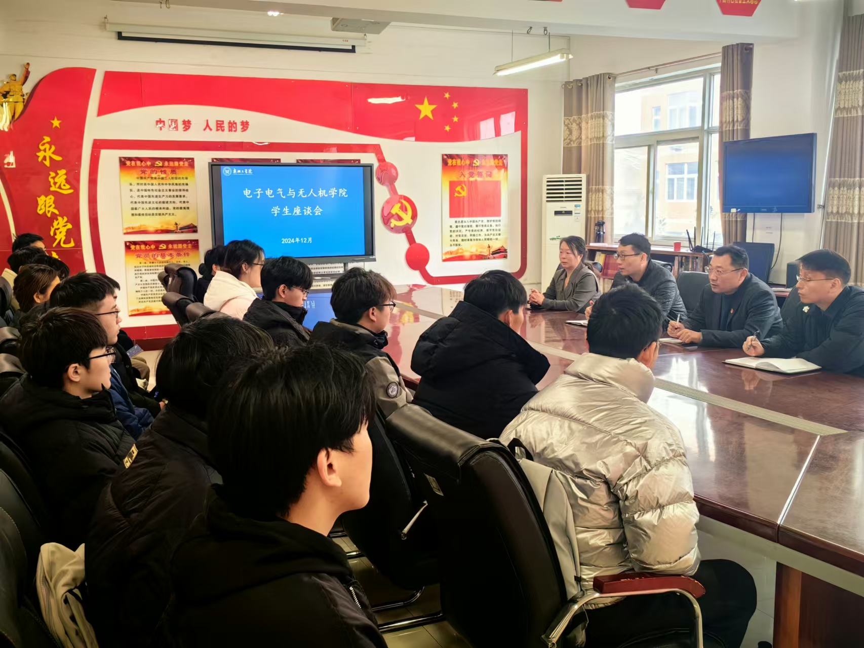 董昭首先对同学们长期以来,积极配合公司工作表达了感谢。座谈会上,同学们畅所欲言,反映了在公司生活、学习中遇到的困难和问题,并对公司的相关工作提出了积极建议。董昭表示会将同学们反映的问题拉清单,列台账,立即整改,并勉励员工要以校为家,认真学习,不断进取。