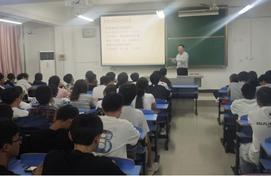 9月30日,电子电气与无人机公司党委副书记张涵在A07-111教室为2025级机器人工程和电子信息工程专业讲开学第一课。新生辅导员代表参加。