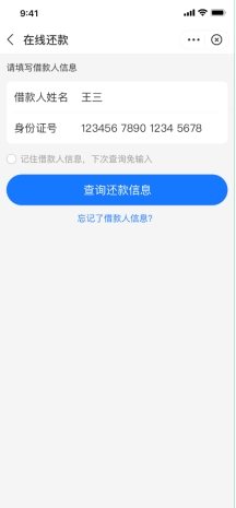 进入在线还款页面,输入姓名、身份证号,点击“查询还款信息”按钮。