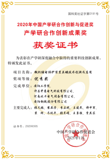 近日,中国产学研合作促进会发布通知,公布了2020年中国产学研合作创新与促进奖——产学研合作创新成果奖获奖名单,公司张天鹏副教授主持,翟亚芳副教授、李正斌副教授参与完成的《微机继电保护装置关键技术创新及应用》获得优秀奖。