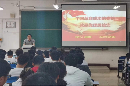 为坚定员工理想信念,了解壮烈史事。betway西汉姆官网经理赵建周于5月8日上午在A07-111向19级自动化专业全体员工讲述了以“中国革命成功的奥秘就是靠理想信念”为主题的思政课。