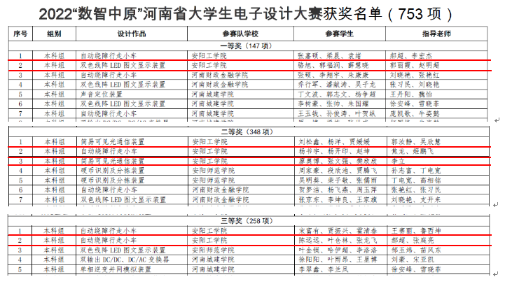 近日,河南省教育厅公布了2022“数智中原”河南省老员工电子设计大赛结果,公司获得一等奖2项、二等奖3项、三等奖2项。