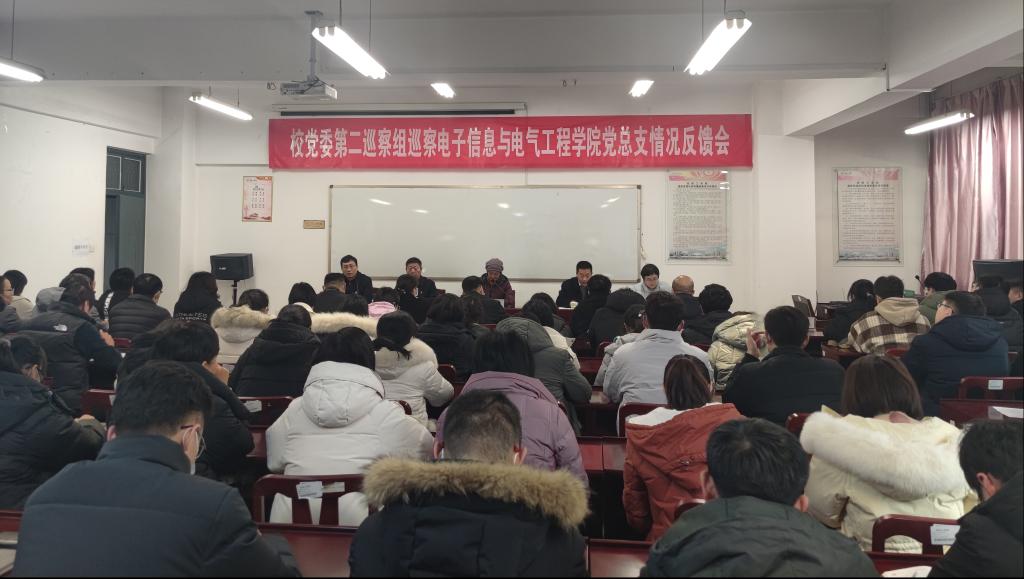 阎利代表第二巡察组肯定了电子信息与电气工程公司党总支近年来取得的成绩,并反馈了巡察发现的问题。同时,就“强化政治建设,强化作风建设,强化组织建设,强化以巡促改”等方面提出了整改建议。